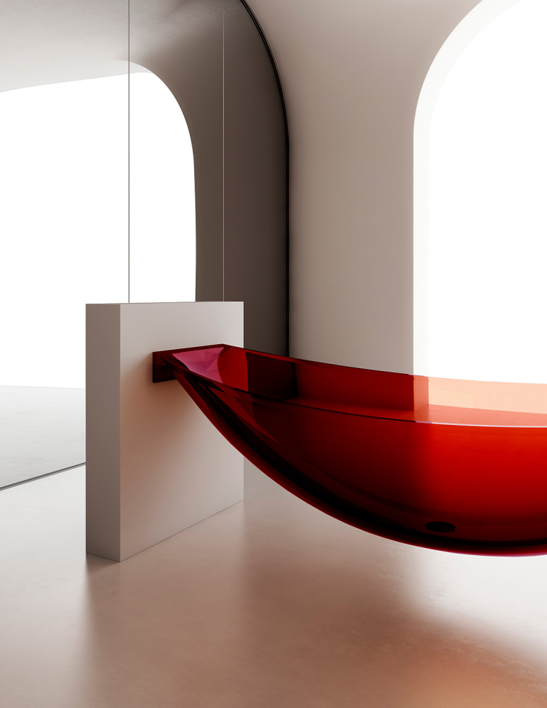 Ванна прозрачная подвесная Abber Kristall 180x80 см AT9704Rubin, красный