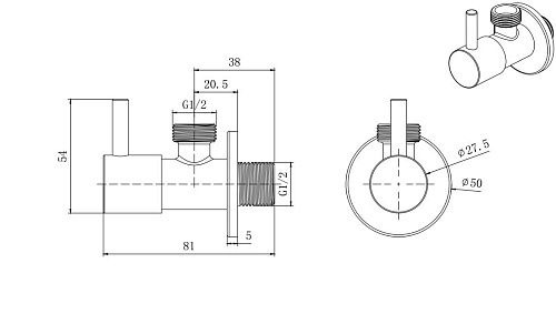 Характеристики вентиль угловой Aquatek (AQ2450BGM)