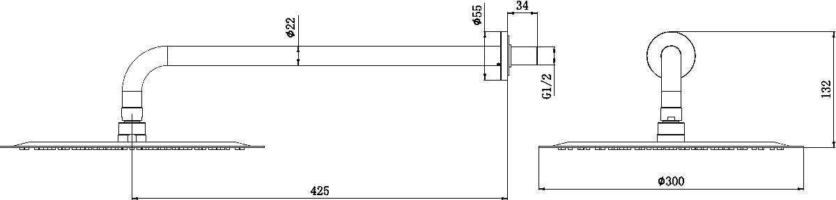 Верхний душ Allen Brau Priority 300 мм 5.31A17-00 с настенным кронштейном, материал - латунь, цвет - хром.