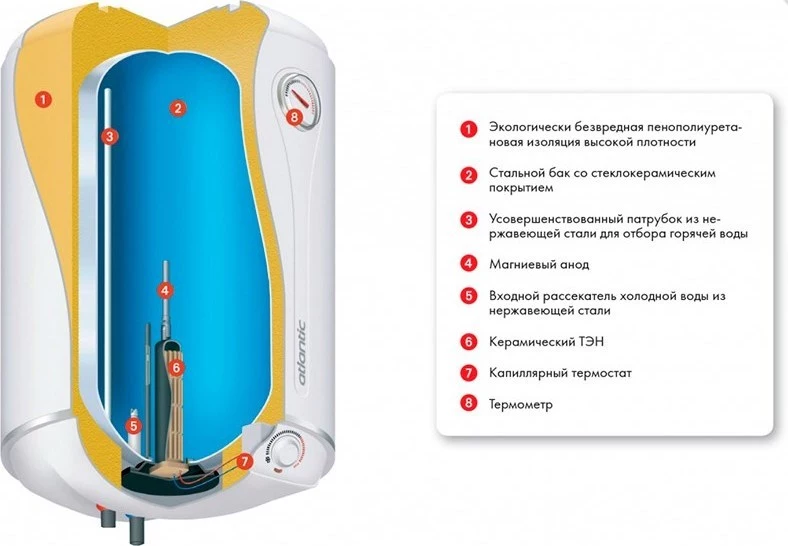 Накопительный электрический водонагреватель серии Steatite Elite объемом 50 литров предназначен для работы с максимальной нагрузкой и отлично адаптирован для жесткой воды. В конструкции водонагревателя используется уникальный «сухой» стеатитовый ТЭН, разработанный инженерами французской компании Atlantic. Компания Atlantic первой применила технологию керамических нагревательных элементов (ТЭНов) в бытовых приборах.
