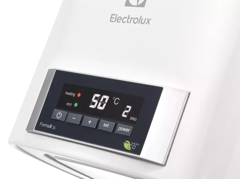 - Легкость управления - на лицевой панели водонагревателя расположена удобная электронная панель управления, с помощью которой можно задать нужную температуру нагрева воды в диапазоне от 30 до 75°С. При выборе на панели управления функции экономного режима (положение «ЕCO»), вода будет нагреваться до температуры 55°С. При такой температуре повышается рабочий ресурс ТЭНа, происходит обеззараживание воды и практически не образуется накипь. В водонагревателе EWH 100 Formax DL предусмотрена возможность управления мощностью нагрева, что позволяет размещать его в помещениях с ограниченной мощностью электросети.