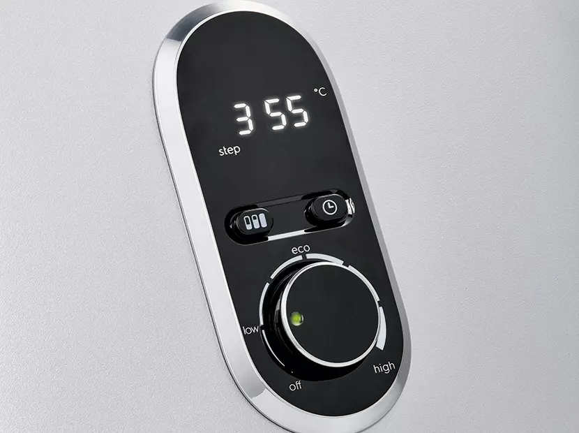 - Режим половинной мощности - на панели управления можно выбрать функцию половинной мощности. Она позволяет экономить электроэнергию и использовать прибор в помещениях с ограниченной мощностью сети, например на даче. Установив полную мощность, включается функция быстрого нагрева до заданной температуры.