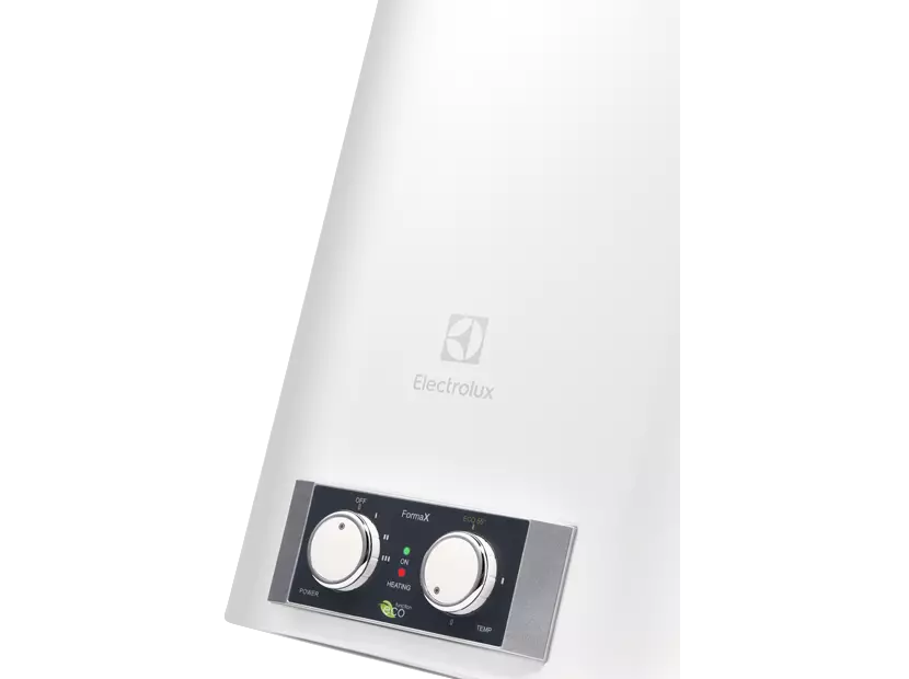 - Легкость управления - на панели управления размещены ручка включения прибора и ручка терморегулятора, с помощью которой можно задать нужную температуру нагрева воды в диапазоне от 30 до 75°С. При выборе на панели управления функции экономного режима (положение «ЕCO»), вода будет нагреваться до температуры 55°С. При такой температуре повышается рабочий ресурс ТЭНа, происходит обеззараживание воды и практически не образуется накипь. В водонагревателе EWH 80 Formax предусмотрена возможность управления мощностью нагрева, что позволяет размещать его в помещениях с ограниченной мощностью электросети.