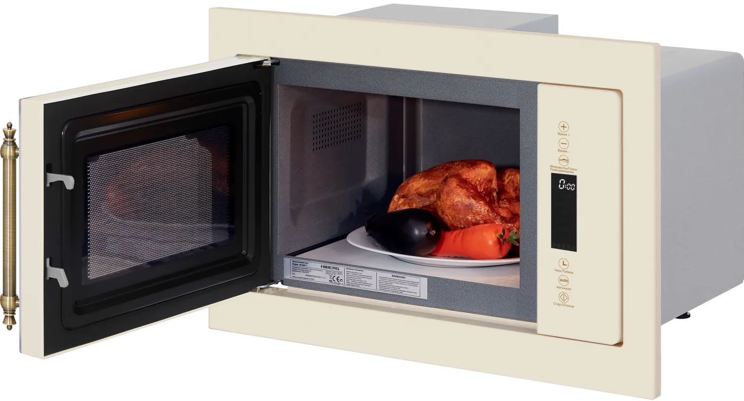 По завершении работы встраиваемая микроволновая печь с грилем подаст звуковой сигнал и отключится автоматически, обеспечивая безопасность и тишину.