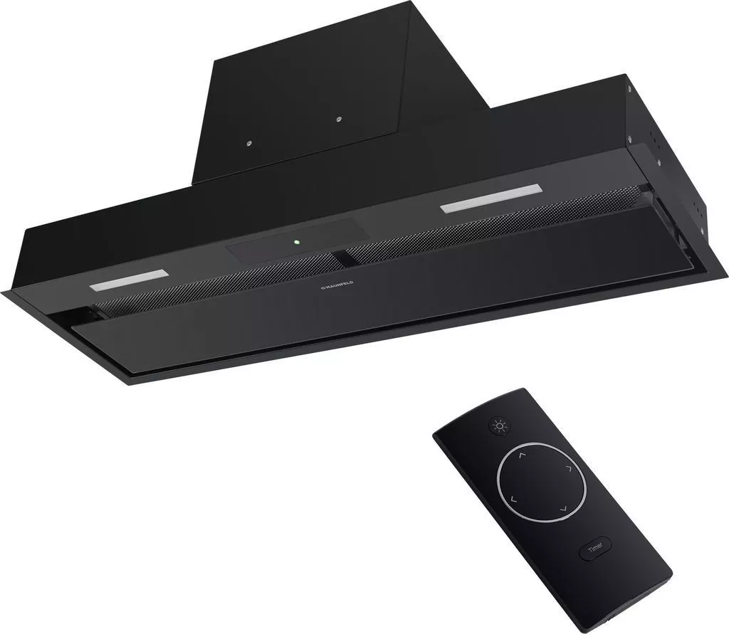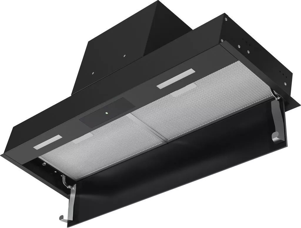 - Ультрасовременная встраиваемая кухонная вытяжка шириной 90 см - это уникальное решение для кухни очень большой площади (до 50 кв.м). Модель монтируется в навесной шкаф над поверхностью плиты. Работает в двух режимах – отвода (при подключении к системе вентиляции) и рециркуляции (при использовании сменного угольного фильтра)