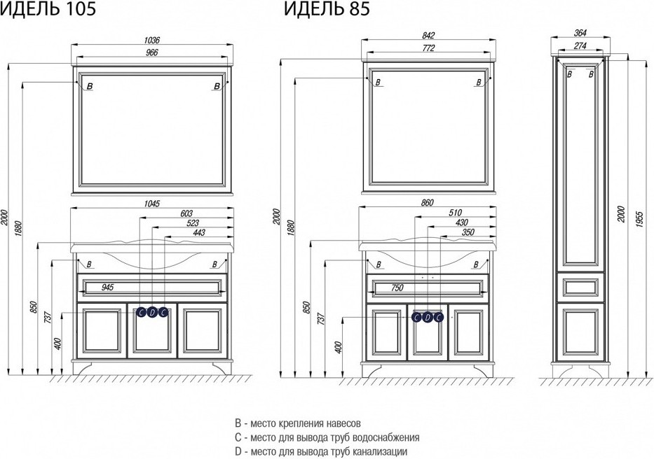 Зеркало Акватон Идель 105 см 1A197902IDM70