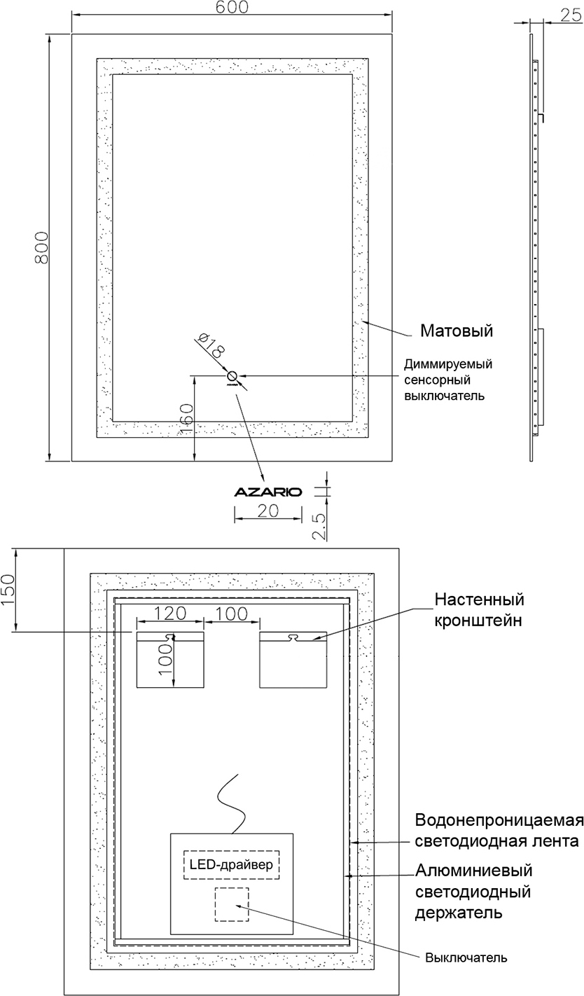 Характеристики зеркало Azario (AZ-Z-046CSNEW)