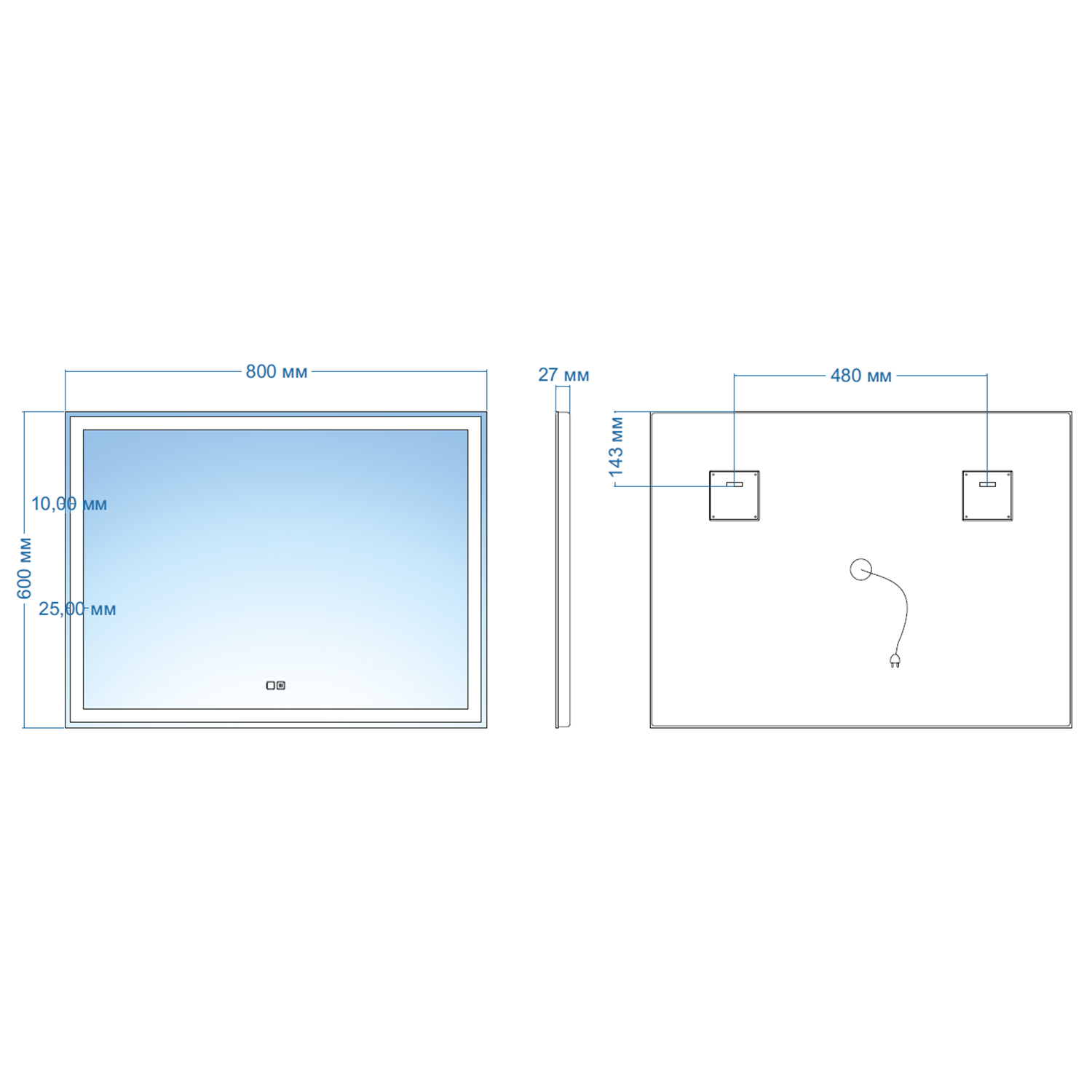 Зеркало Azario Ливия 80 см с Led-подсветкой и сенсорным выключателем, водоотталкивающая поверхность.