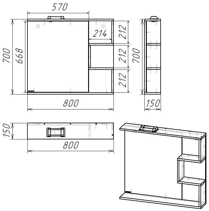Зеркало EvaGold Forest 80 см EG010446, цвет - белый/дуб вотан.