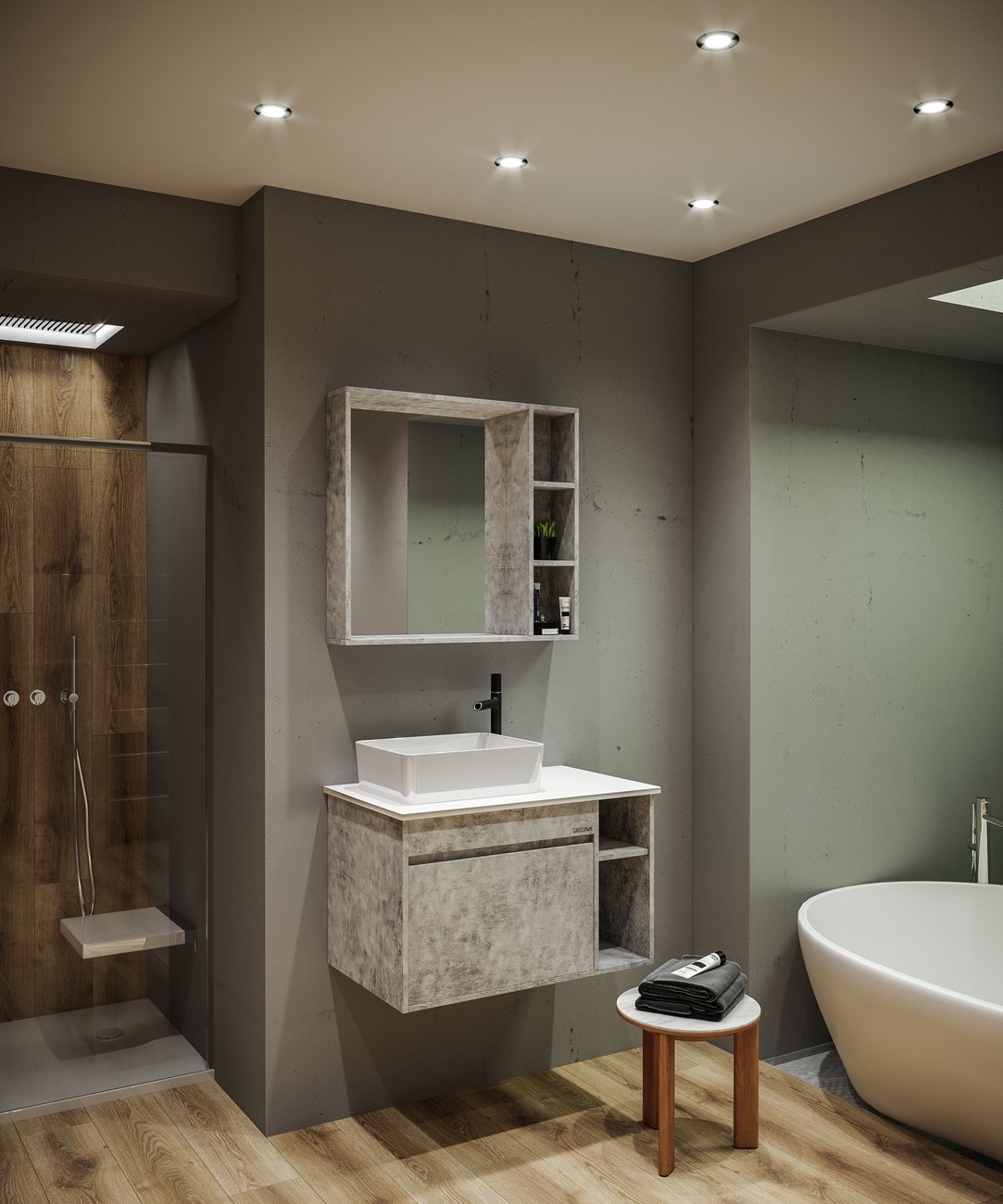 Зеркало Grossman Фалькон 80 см 208003, с полками, цвет - бетон.