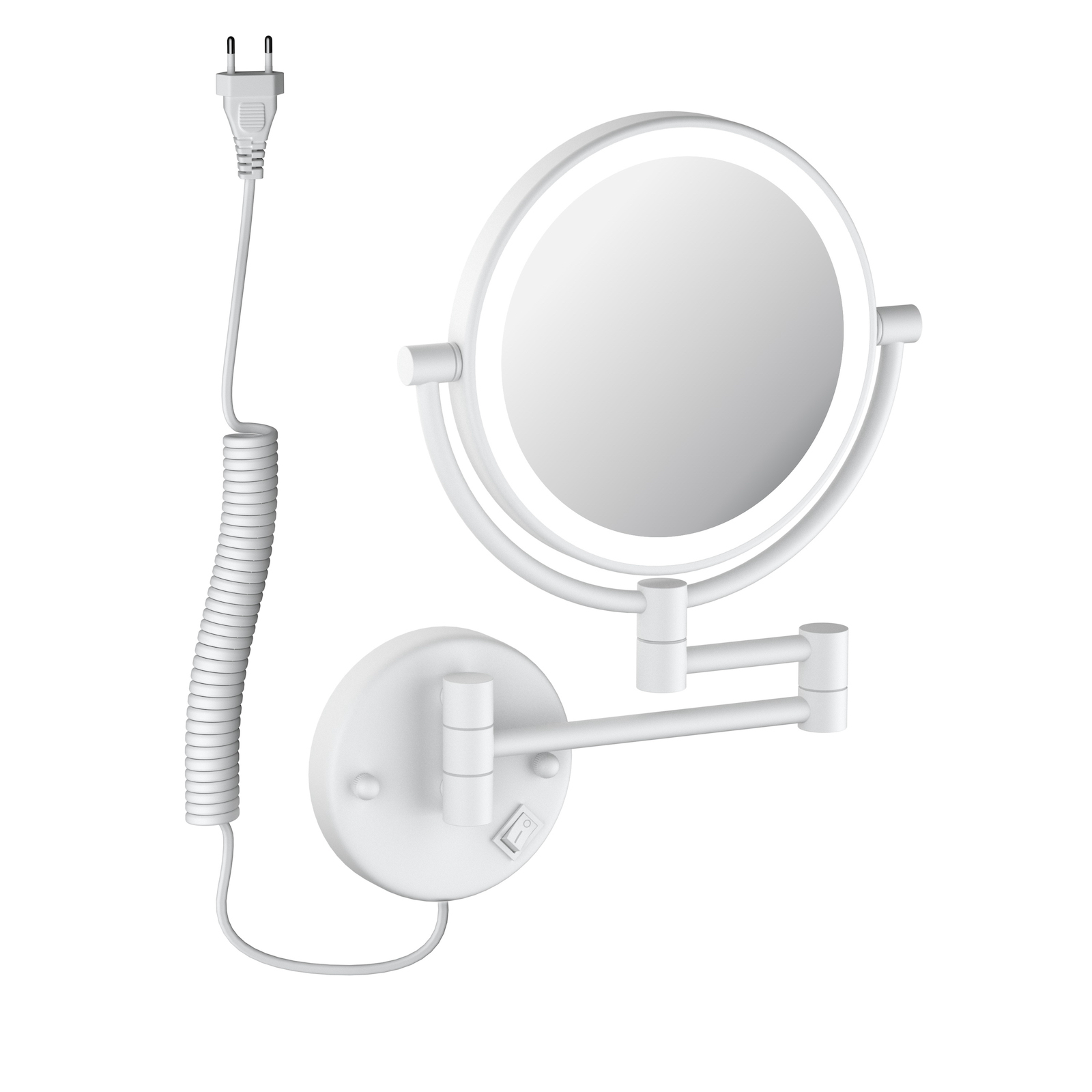 Зеркало косметическое двухстороннее Timo Saona 13376/16 с подсветкой, 5-х кратное увеличение, материал латунь, цвет белый матовый.