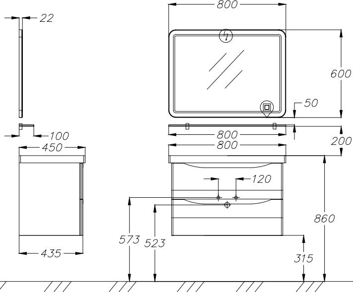 Зеркало Opadiris Элеганс 80 см с подсветкой и сенсорным выключателем.