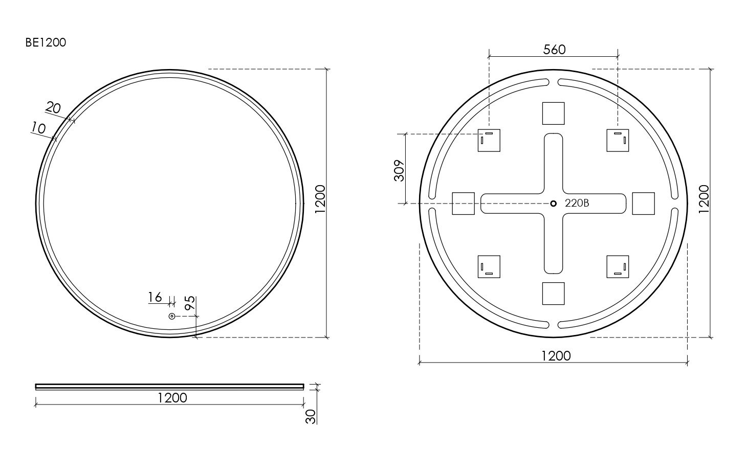 Зеркало Sancos BE1200 Bella 120 см с подсветкой, диммером и сенсорным выключателем.