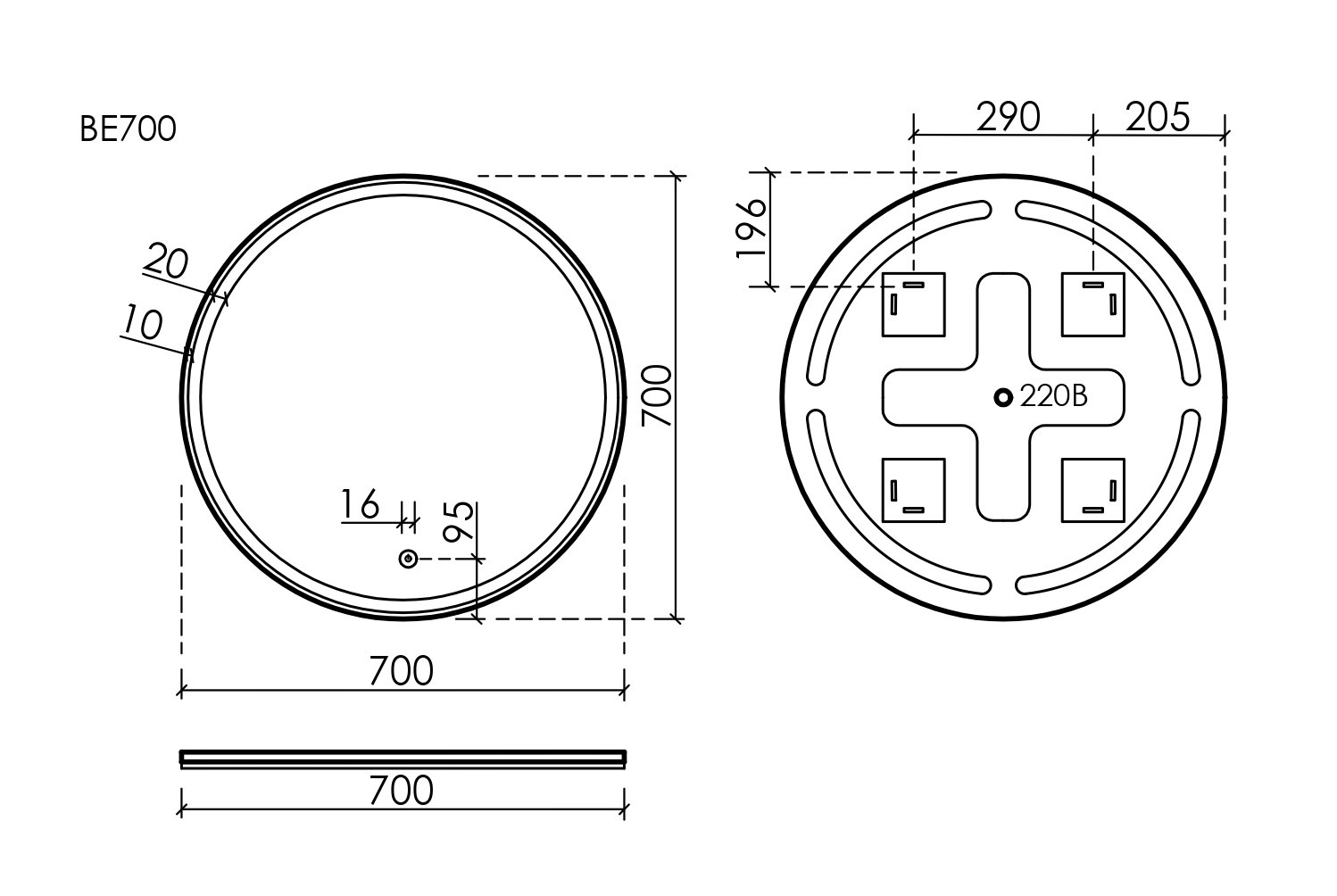 Зеркало Sancos BE700 Bella 70 см с подсветкой, диммером и сенсорным выключателем.