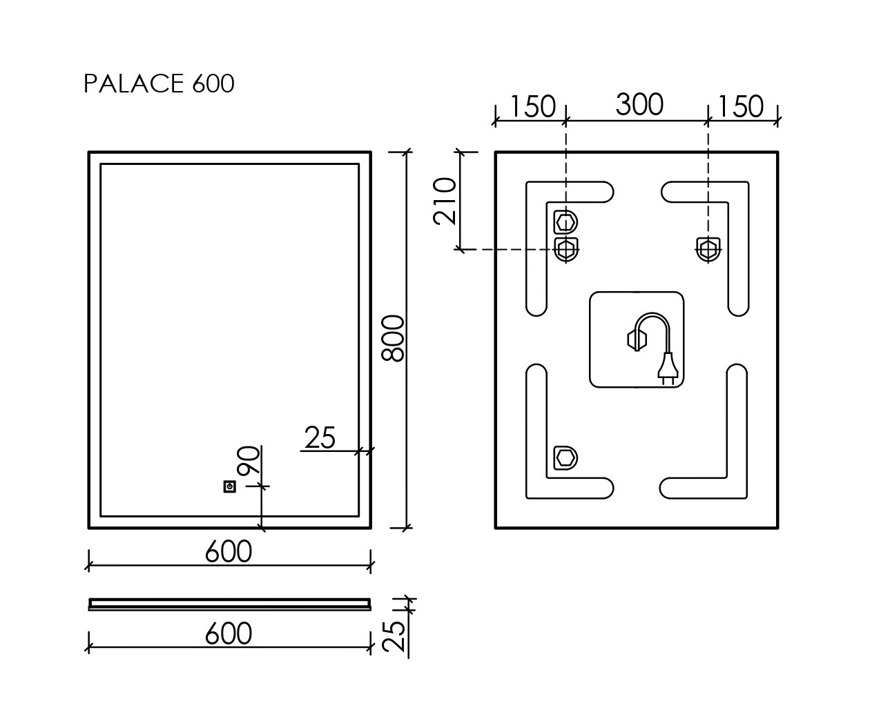 Зеркало Sancos Palace 60х80 см PA600 с LED подсветкой, сенсорным выключателем и диммером.