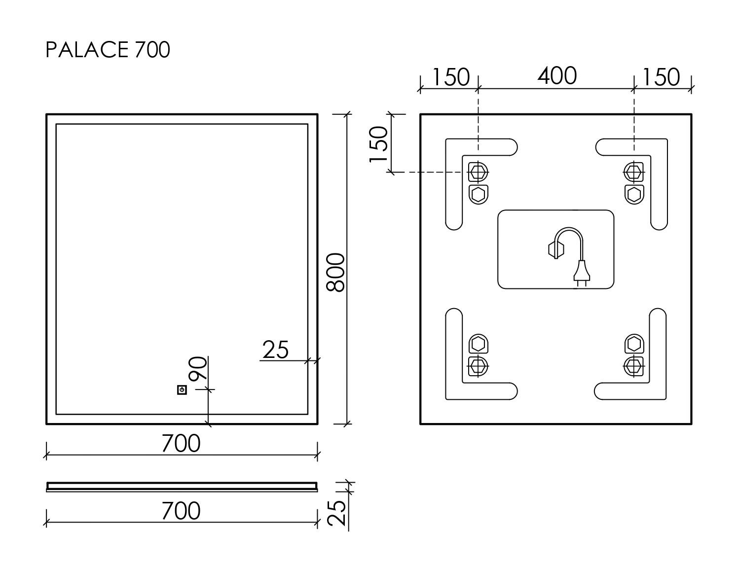Зеркало Sancos Palace 70х80 см PA700 с LED подсветкой, сенсорным выключателем и диммером.