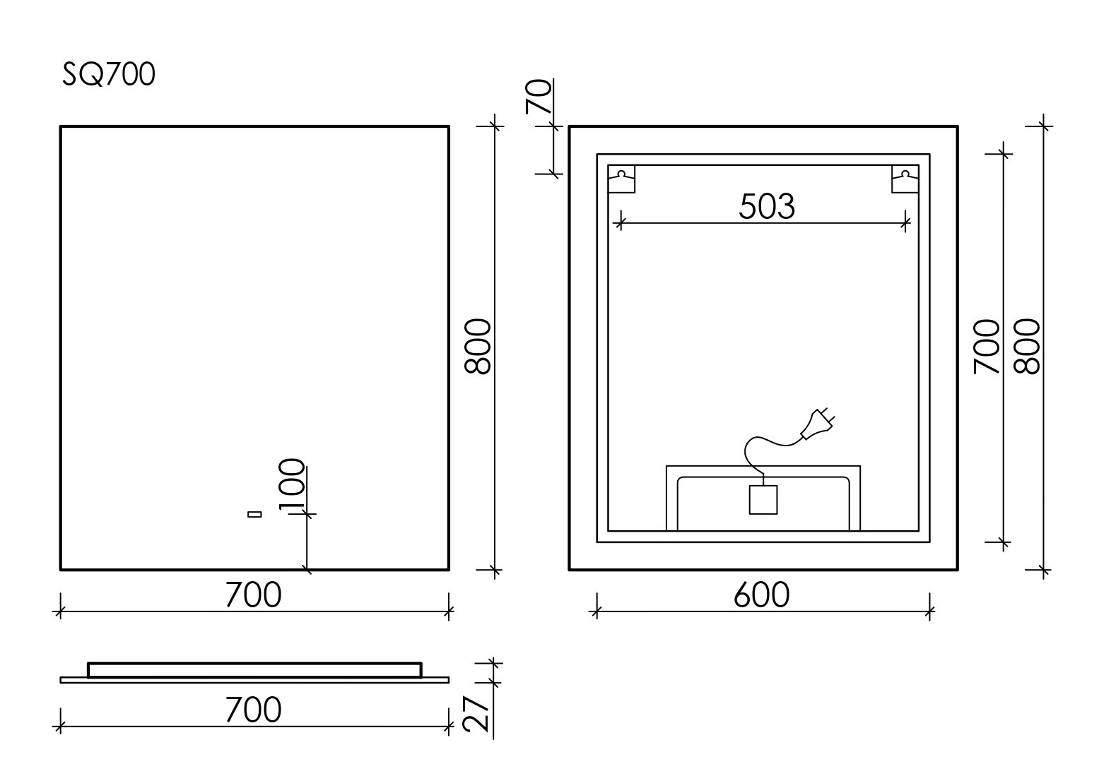 Зеркало Sancos Square 70х80 см SQ700 с LED подсветкой, сенсорным выключателем и диммером.