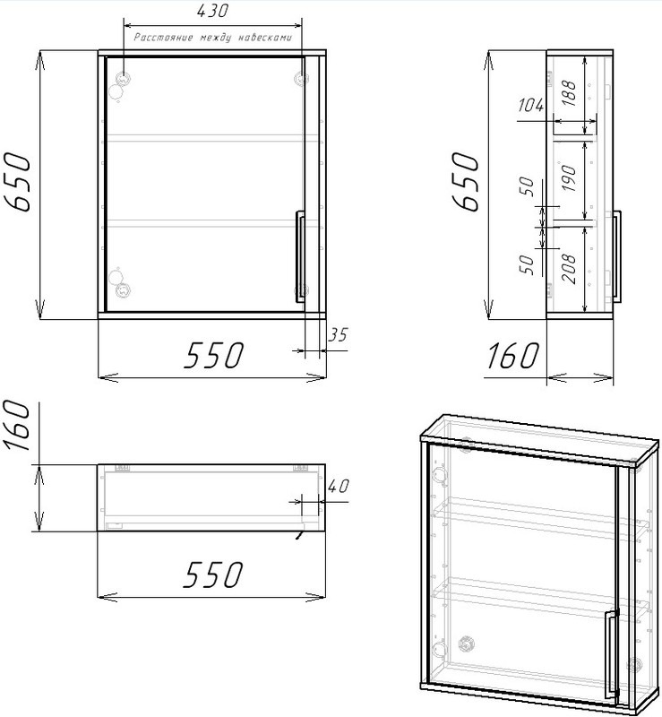 Характеристики зеркальный шкаф EvaGold (EG010792)