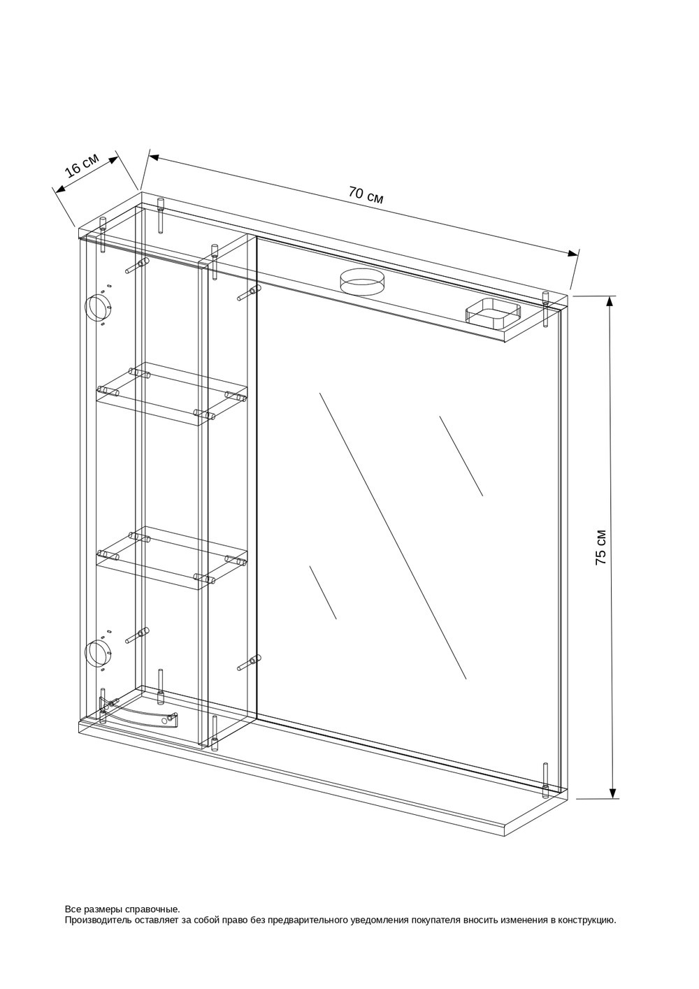 Характеристики зеркальный шкаф EvaGold (EG010198)
