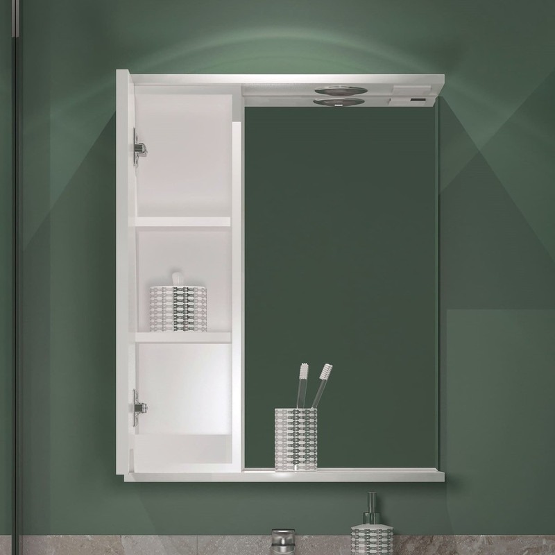 Зеркало-шкаф EvaGold Paola EG010091 с подсветкой 55х70х17 см, левый, цвет белый.