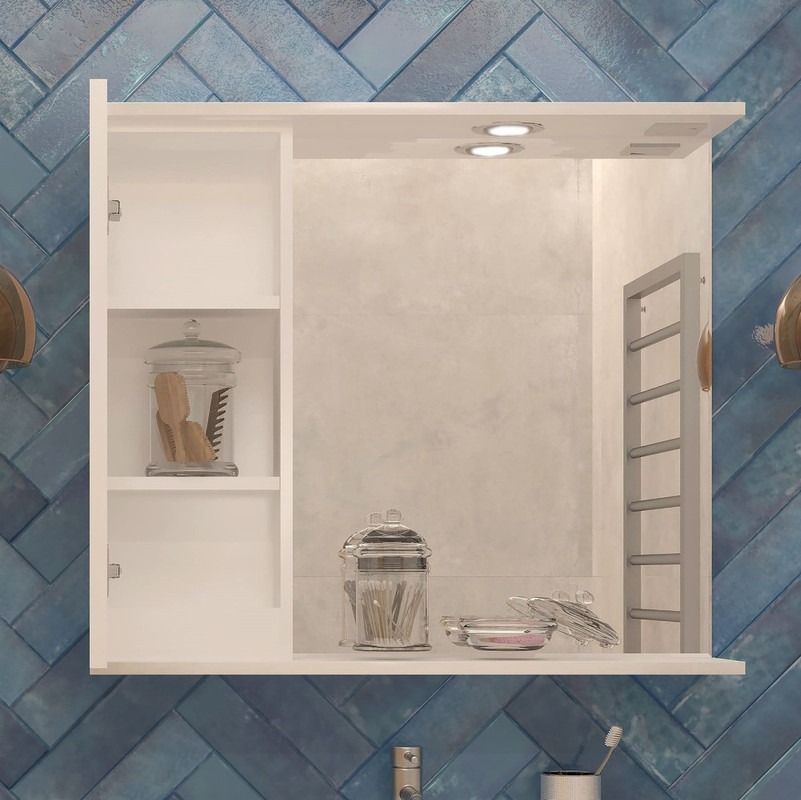Зеркало-шкаф EvaGold Paola EG010256 с подсветкой 80х70х17 см, левый, цвет белый.
