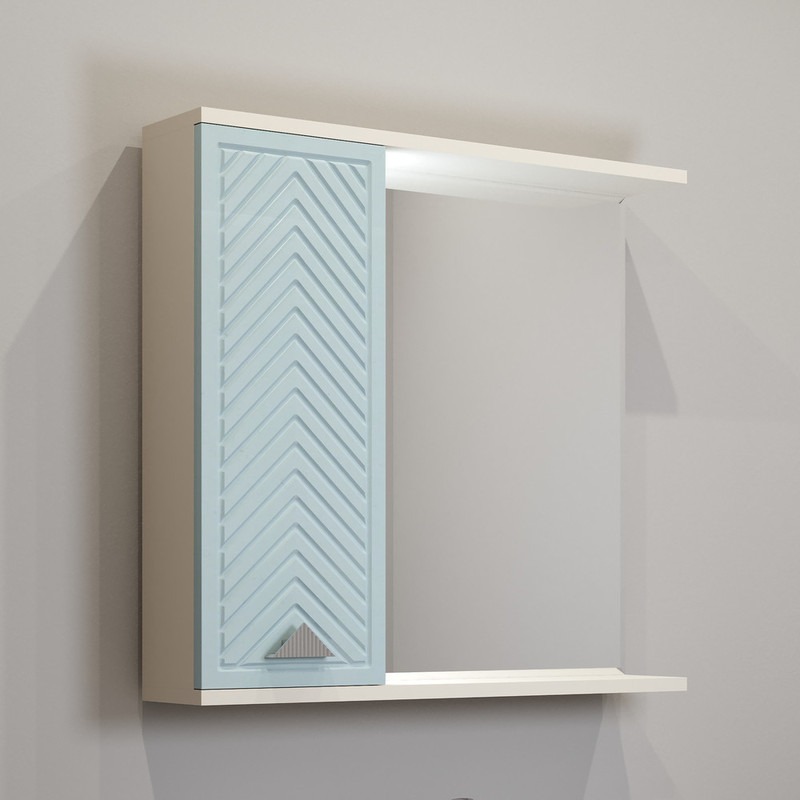 Зеркало-шкаф EvaGold Sky EG010850 с подсветкой 72х70х16 см, левый, цвет индиго/кашемир.