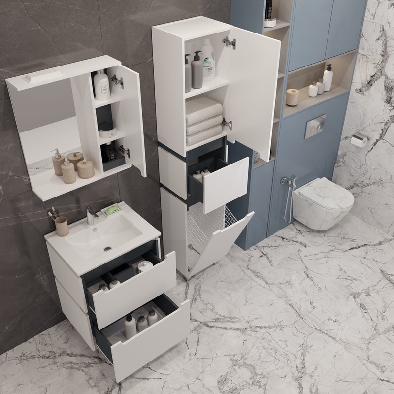 Зеркало-шкаф EvaGold Vesta 58 см EG010417, белый/графит