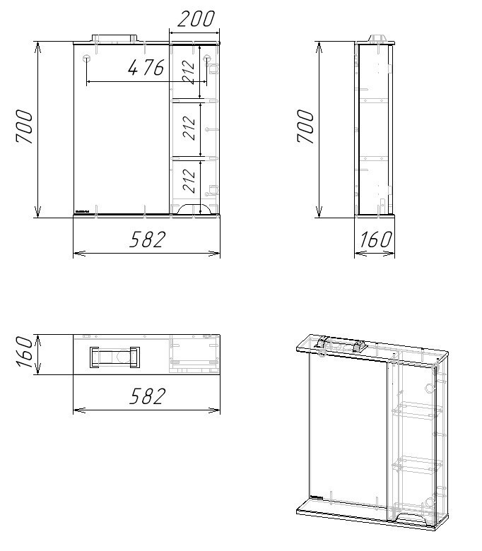 Характеристики зеркальный шкаф EvaGold (EG010417)