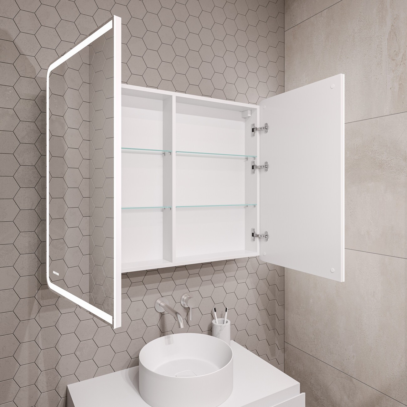 Зеркало-шкаф Grossman Адель 90 см 209004 с LED подсветкой и сенсорным выключателем, цветовая температура 4000К, цвет - белый глянец.