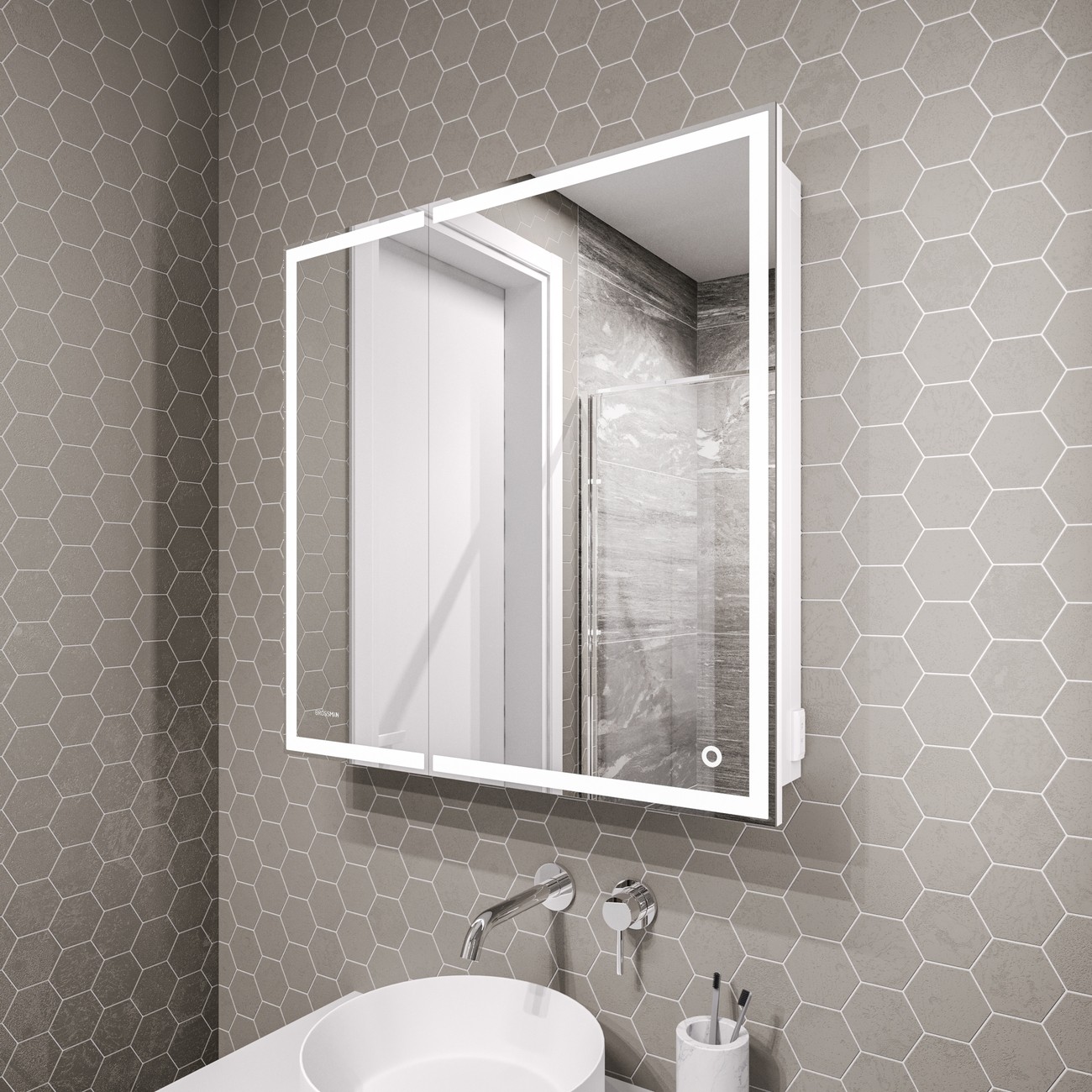 Зеркало-шкаф Grossman Меркадо 80 см 208010 с LED подсветкой и сенсорным выключателем, цветовая температура 4000К, цвет - белый.