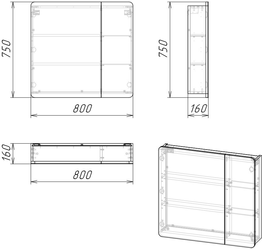 Зеркало-шкаф Grossman Талис 80 см 208009 L, бетон пайн