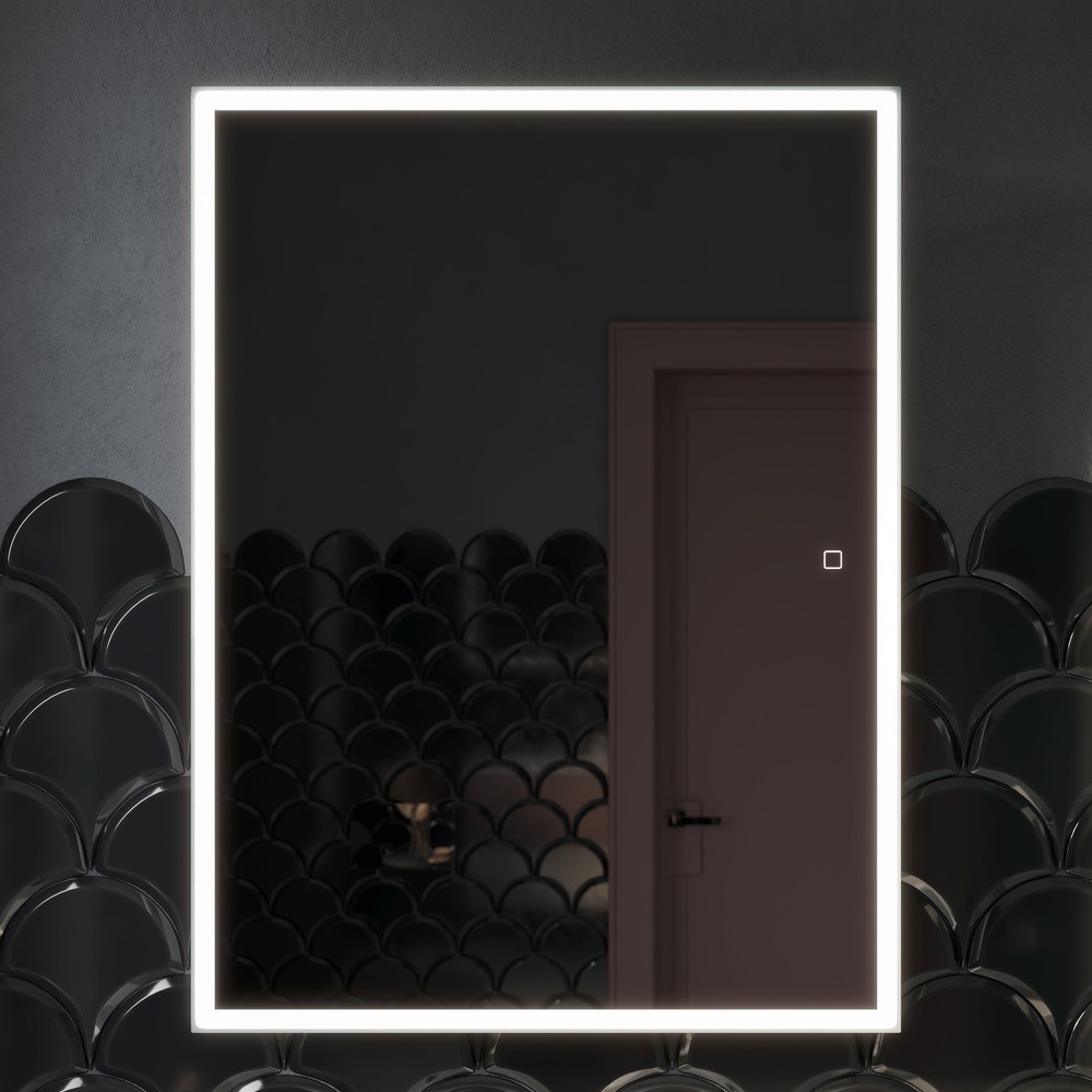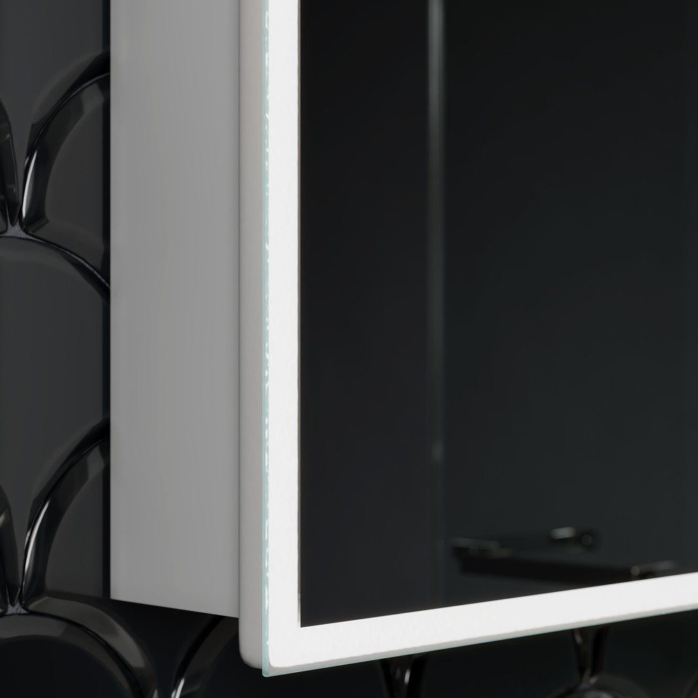 Зеркало-шкаф с подсветкой Sancos Cube 600х800х140 CU600. LED подсветка, универсальные крепления петель, сенсорный включатель, 2 полки стекло.