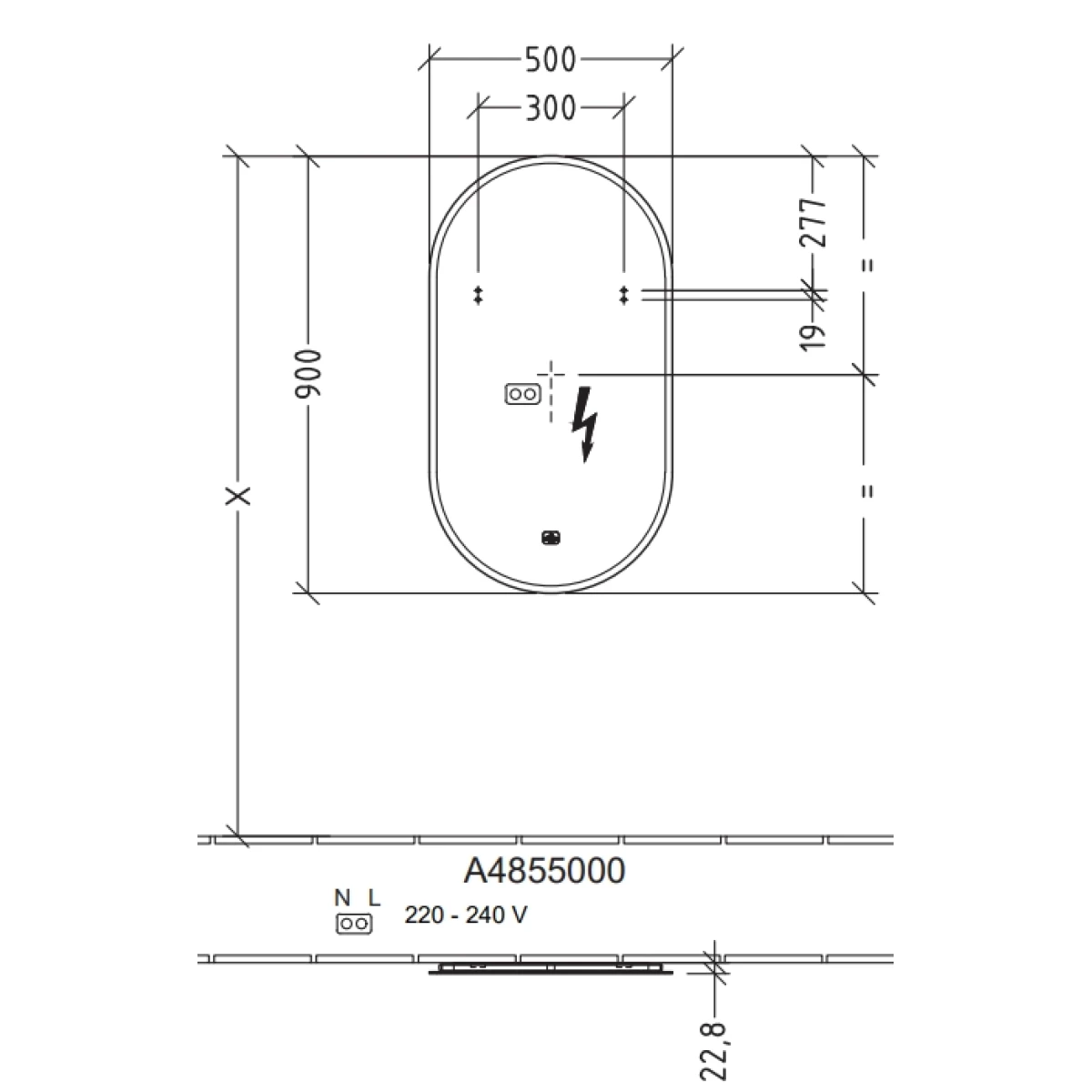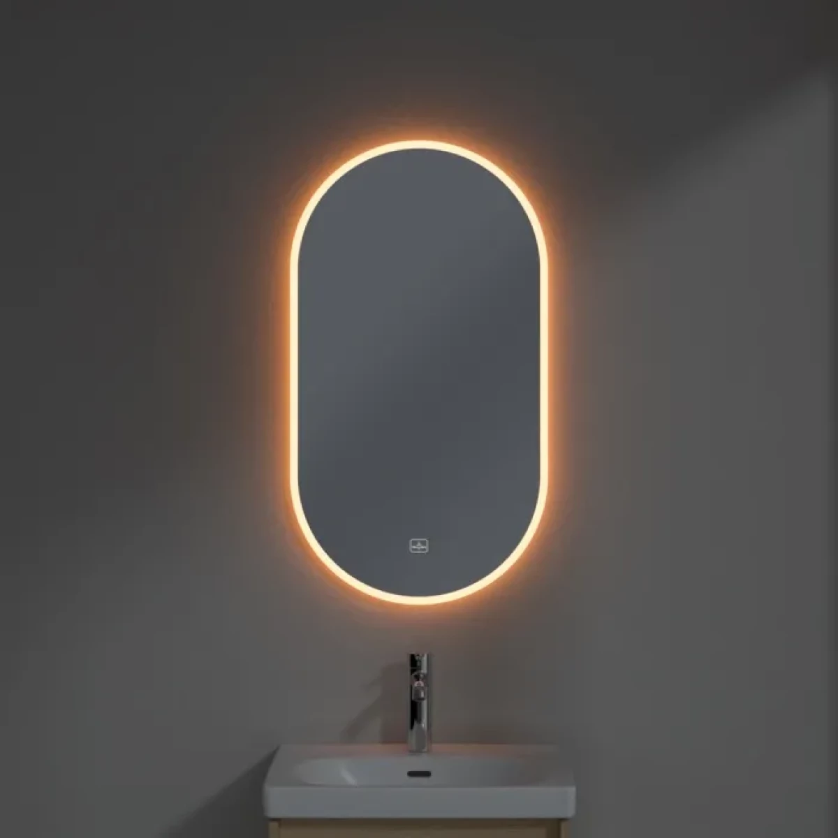 - Зеркало с пристенной подсветкой и световой линией по внешнему периметру