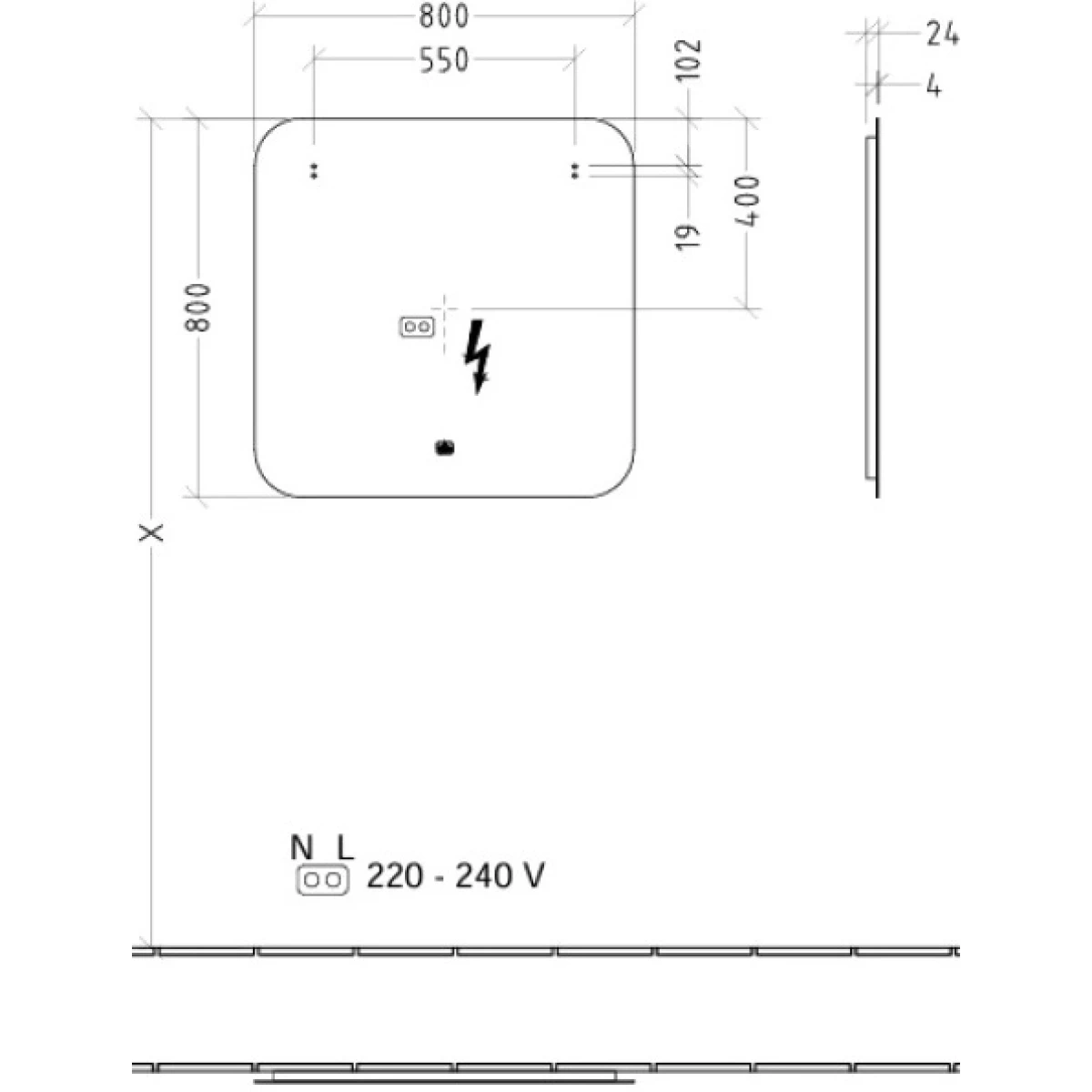 - Зеркало с пристенной подсветкой